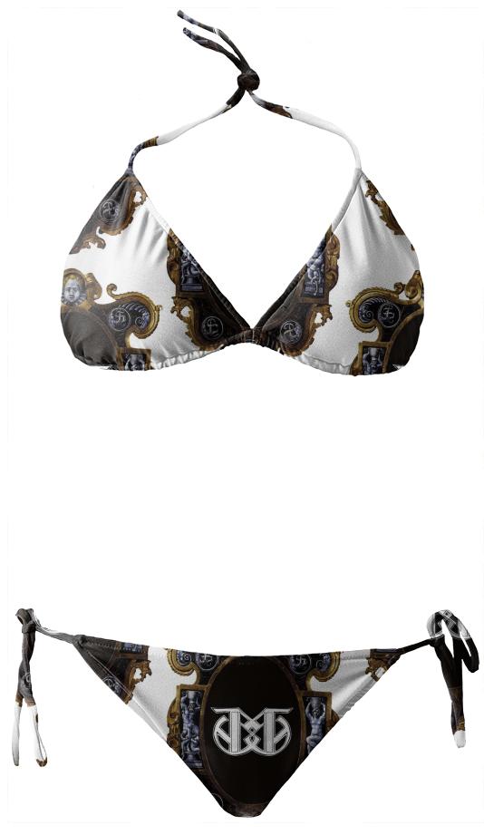 String bikini with ties at the neck bust and hips. Throw it in a bag and head to the beach!