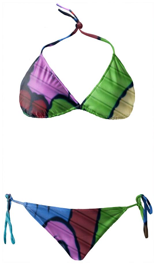 String bikini with ties at the neck bust and hips. Throw it in a bag and head to the beach!