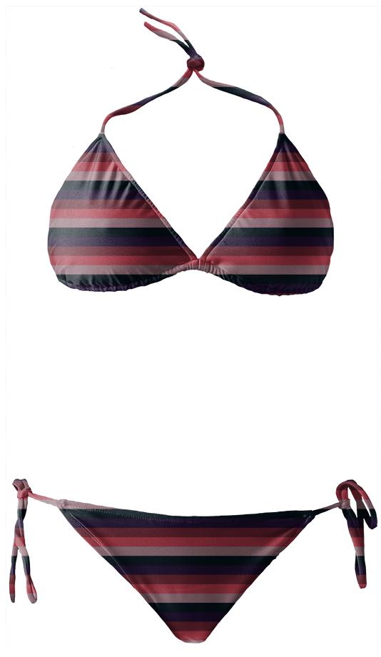 String bikini with ties at the neck bust and hips. Throw it in a bag and head to the beach!