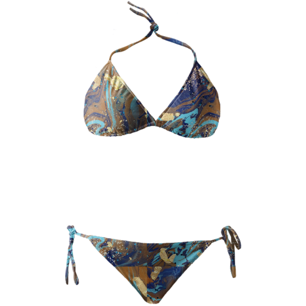String bikini with ties at the neck bust and hips. Throw it in a bag and head to the beach!