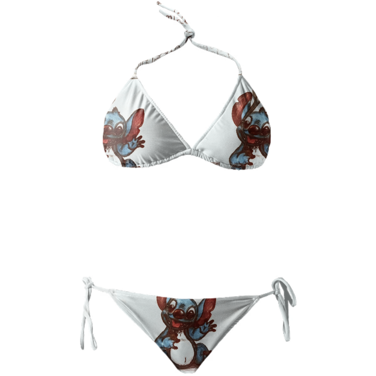 String bikini with ties at the neck bust and hips. Throw it in a bag and head to the beach!