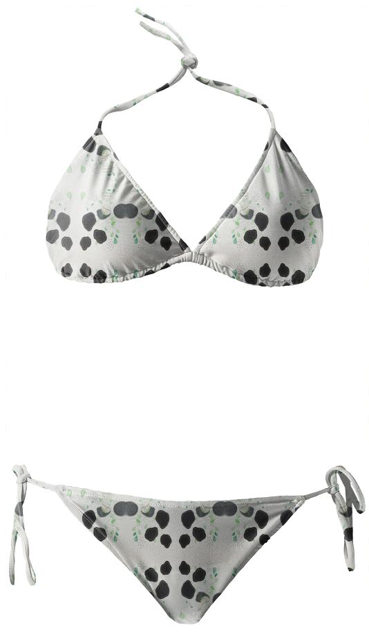 String bikini with ties at the neck bust and hips. Throw it in a bag and head to the beach!
