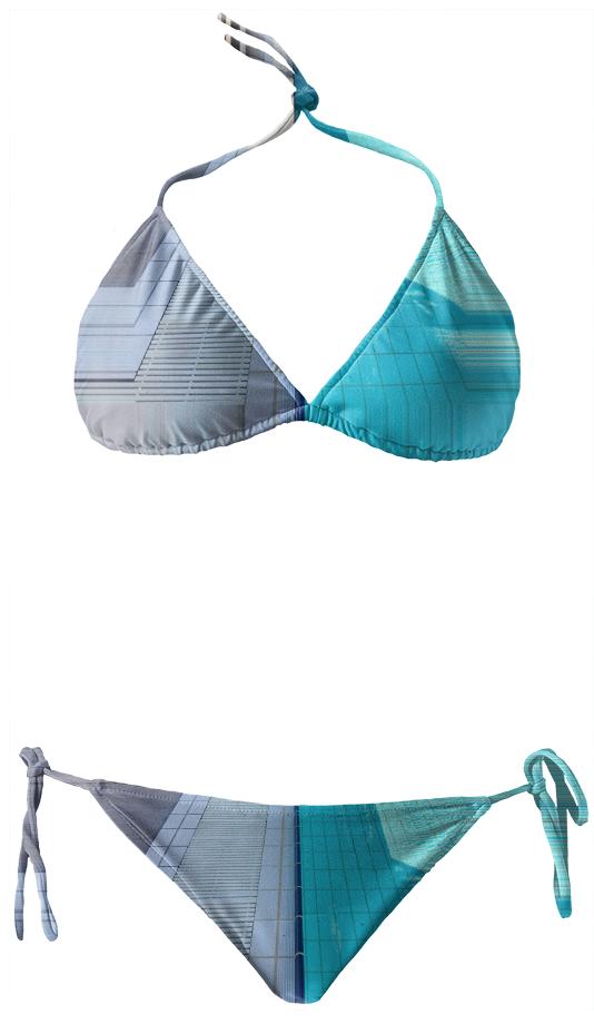 String bikini with ties at the neck bust and hips. Throw it in a bag and head to the beach!