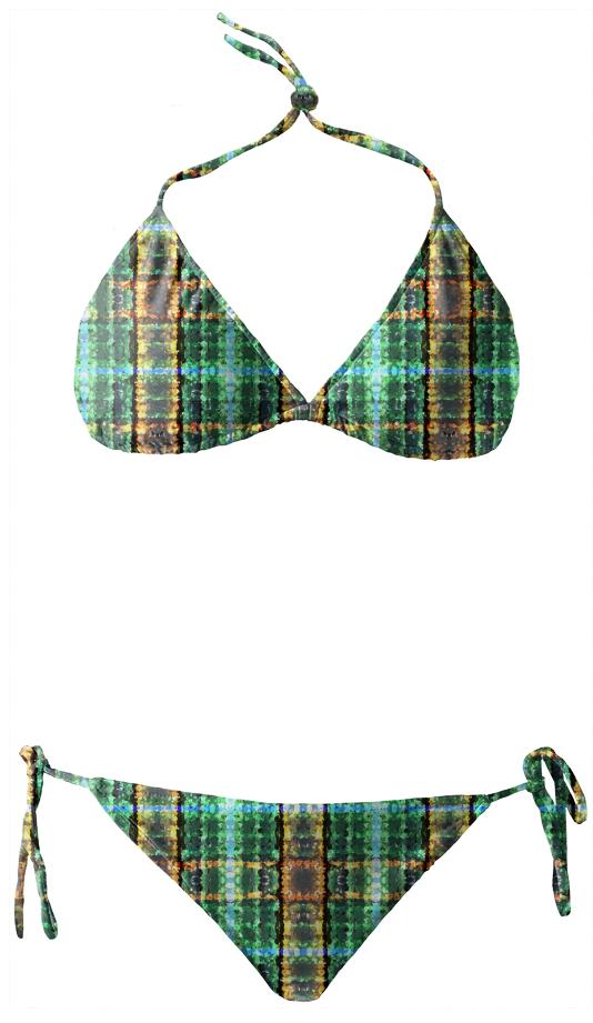 String bikini with ties at the neck bust and hips. Throw it in a bag and head to the beach!