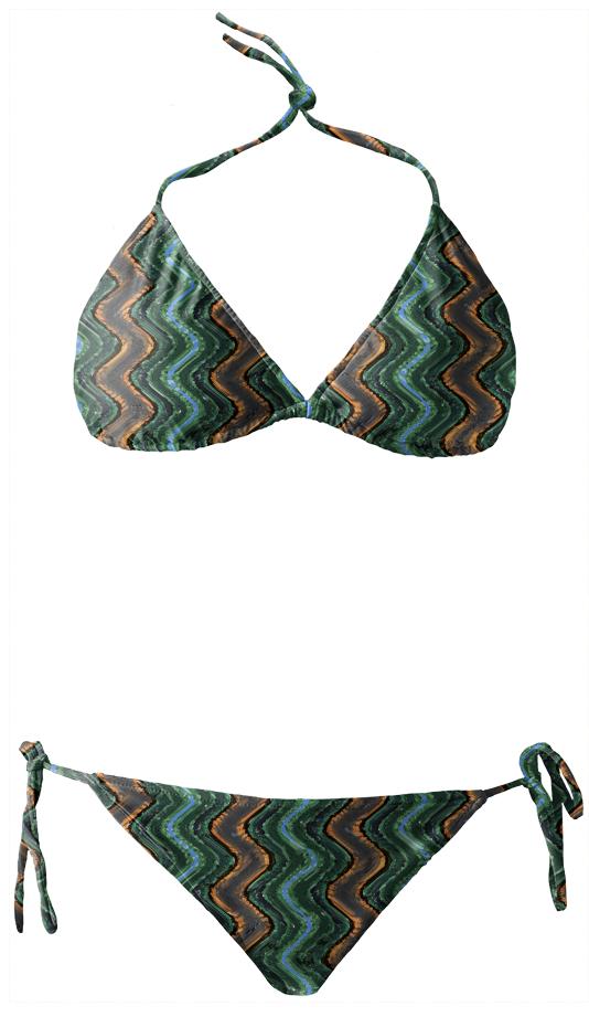 String bikini with ties at the neck bust and hips. Throw it in a bag and head to the beach!