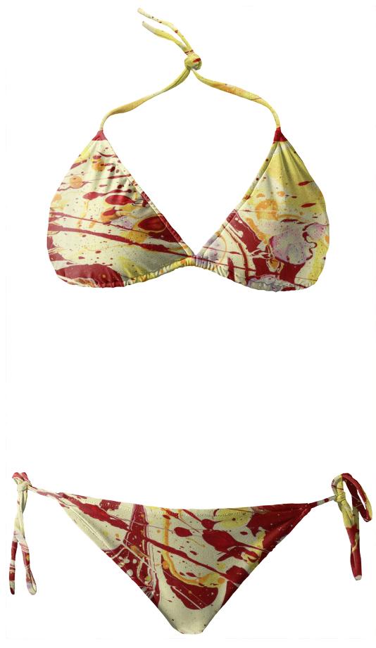 String bikini with ties at the neck bust and hips. Throw it in a bag and head to the beach!