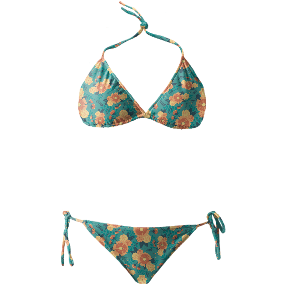 String bikini with ties at the neck bust and hips. Throw it in a bag and head to the beach!