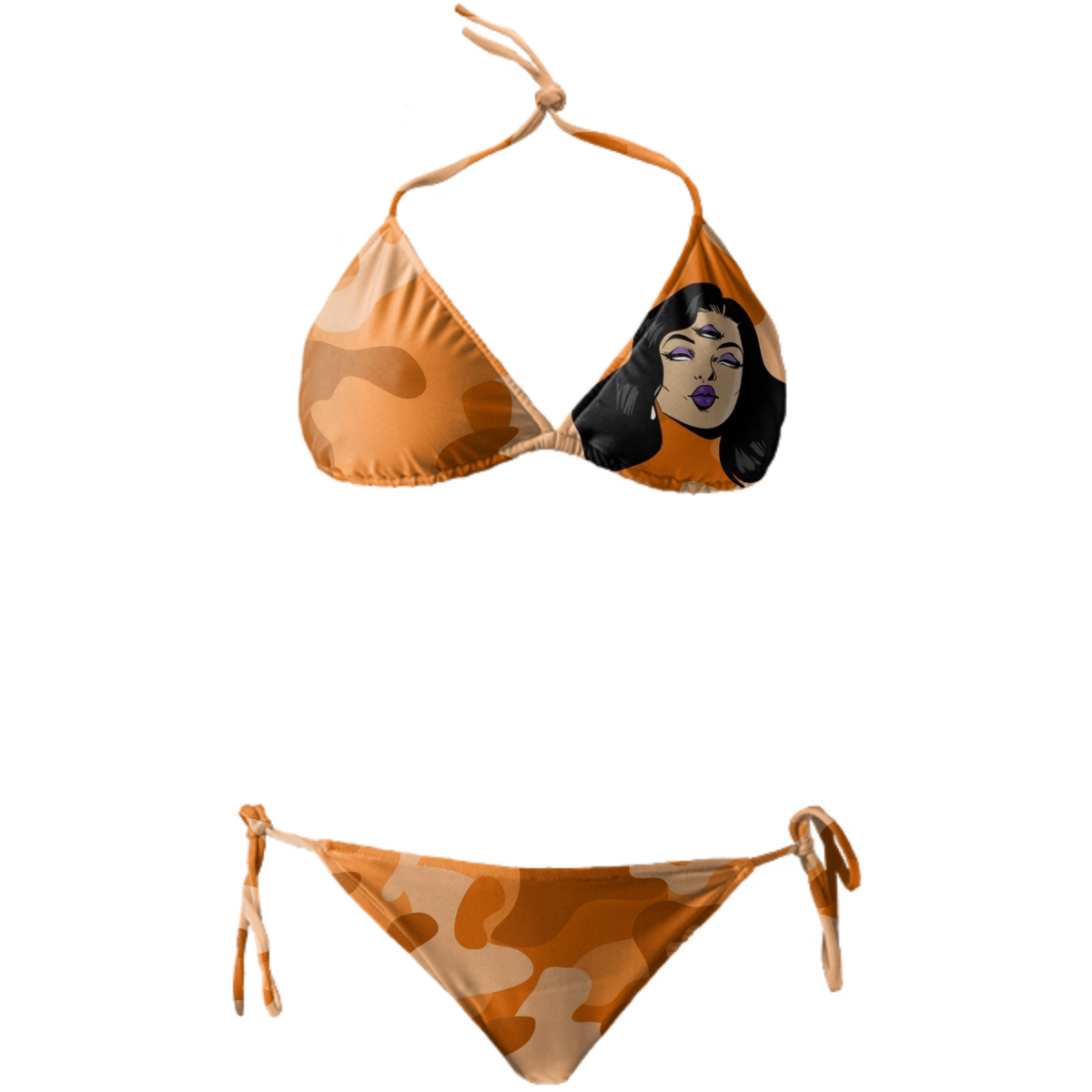 String bikini with ties at the neck bust and hips. Throw it in a bag and head to the beach!