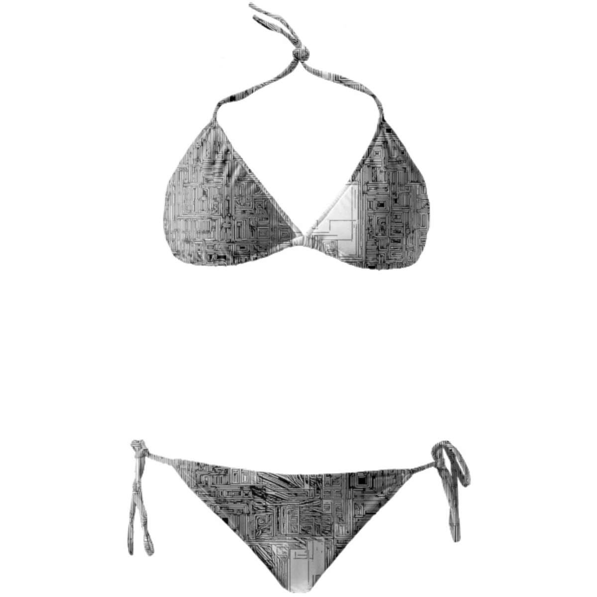 String bikini with ties at the neck bust and hips. Throw it in a bag and head to the beach!