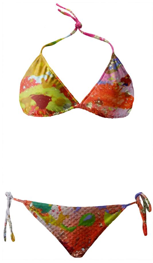 String bikini with ties at the neck bust and hips. Throw it in a bag and head to the beach!