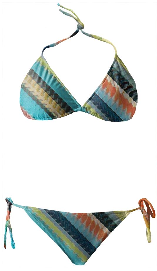 String bikini with ties at the neck bust and hips. Throw it in a bag and head to the beach!