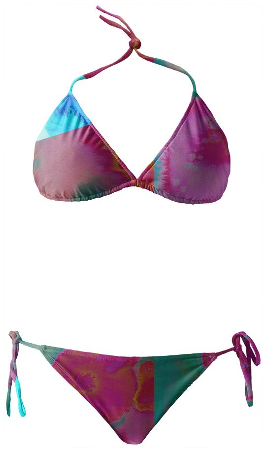 String bikini with ties at the neck bust and hips. Throw it in a bag and head to the beach!
