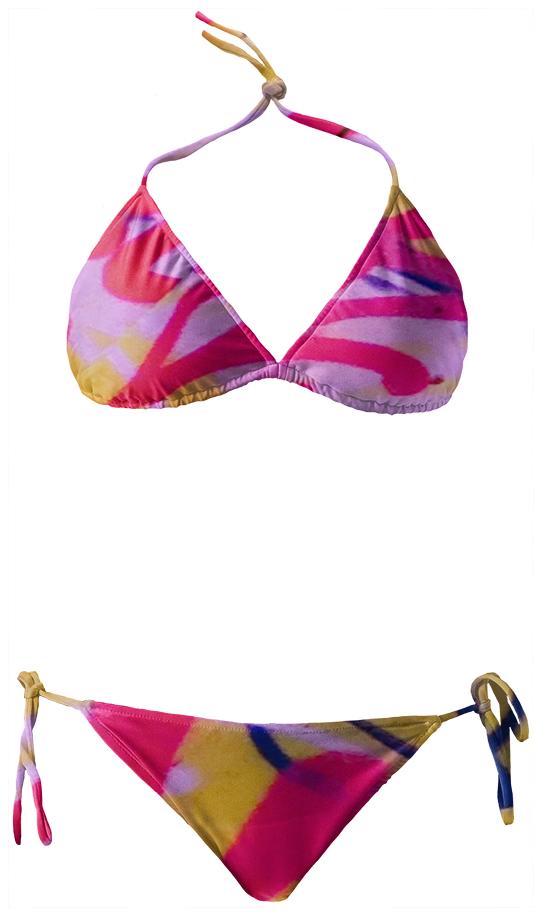 String bikini with ties at the neck bust and hips. Throw it in a bag and head to the beach!