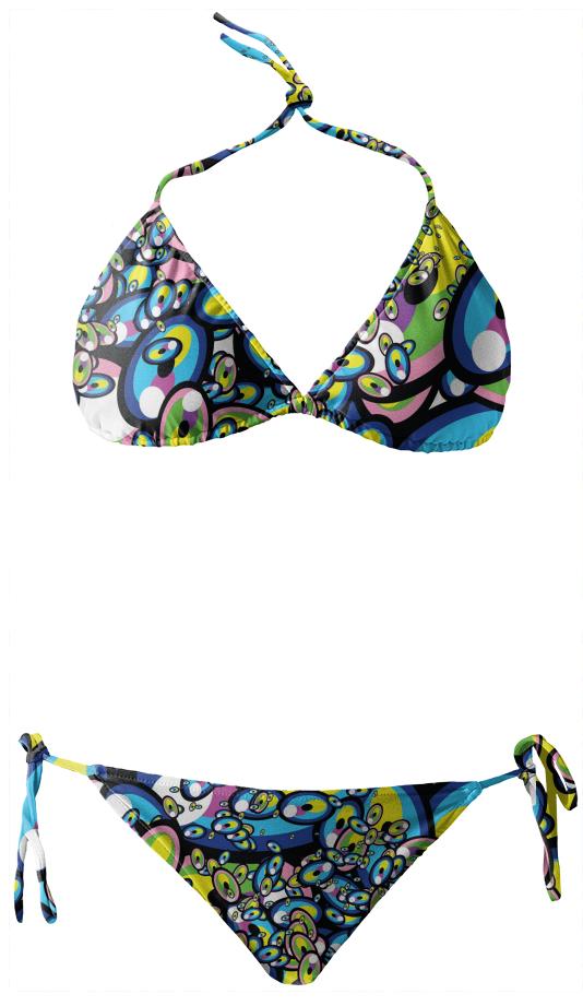 String bikini with ties at the neck bust and hips. Throw it in a bag and head to the beach!