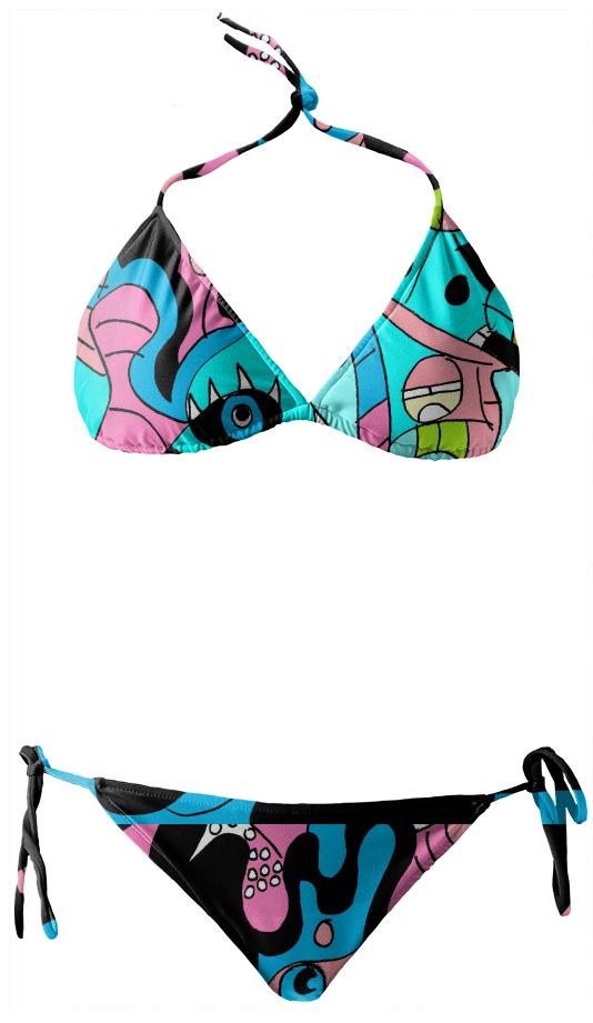 String bikini with ties at the neck bust and hips. Throw it in a bag and head to the beach!