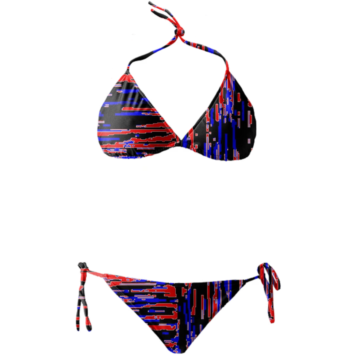 String bikini with ties at the neck bust and hips. Throw it in a bag and head to the beach!