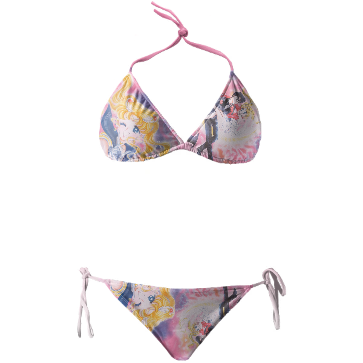 String bikini with ties at the neck bust and hips. Throw it in a bag and head to the beach!