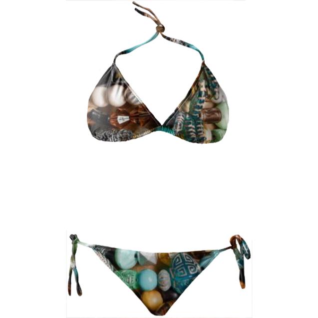 String bikini with ties at the neck bust and hips. Throw it in a bag and head to the beach!