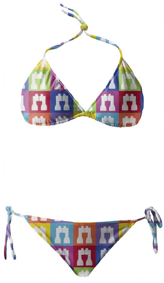 String bikini with ties at the neck bust and hips. Throw it in a bag and head to the beach!