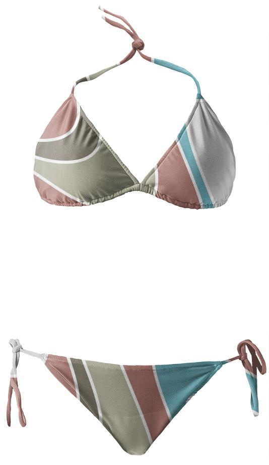 String bikini with ties at the neck bust and hips. Throw it in a bag and head to the beach!