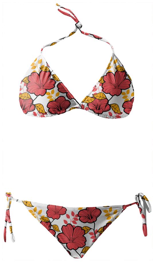 String bikini with ties at the neck bust and hips. Throw it in a bag and head to the beach!