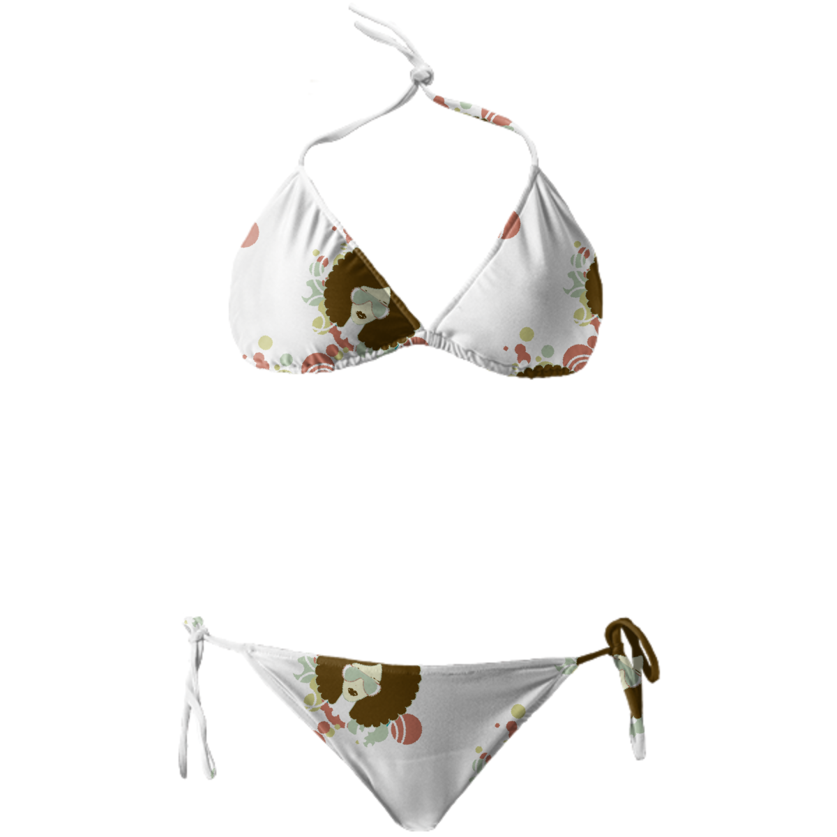 String bikini with ties at the neck bust and hips. Throw it in a bag and head to the beach!