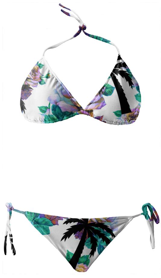 String bikini with ties at the neck bust and hips. Throw it in a bag and head to the beach!
