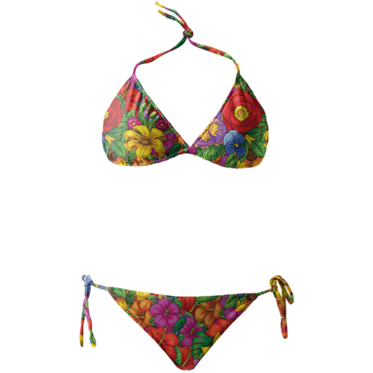String bikini with ties at the neck bust and hips. Throw it in a bag and head to the beach!