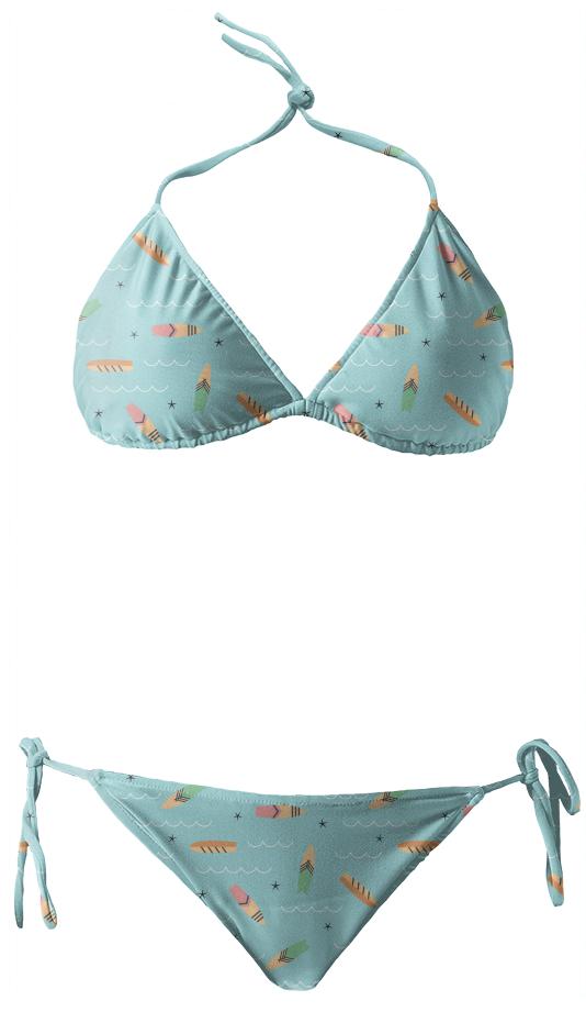String bikini with ties at the neck bust and hips. Throw it in a bag and head to the beach!