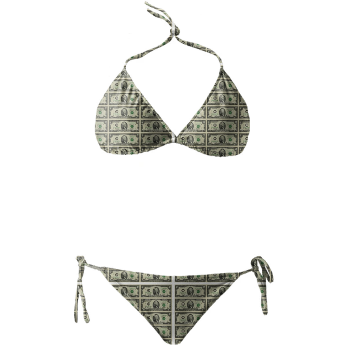 String bikini with ties at the neck bust and hips. Throw it in a bag and head to the beach!