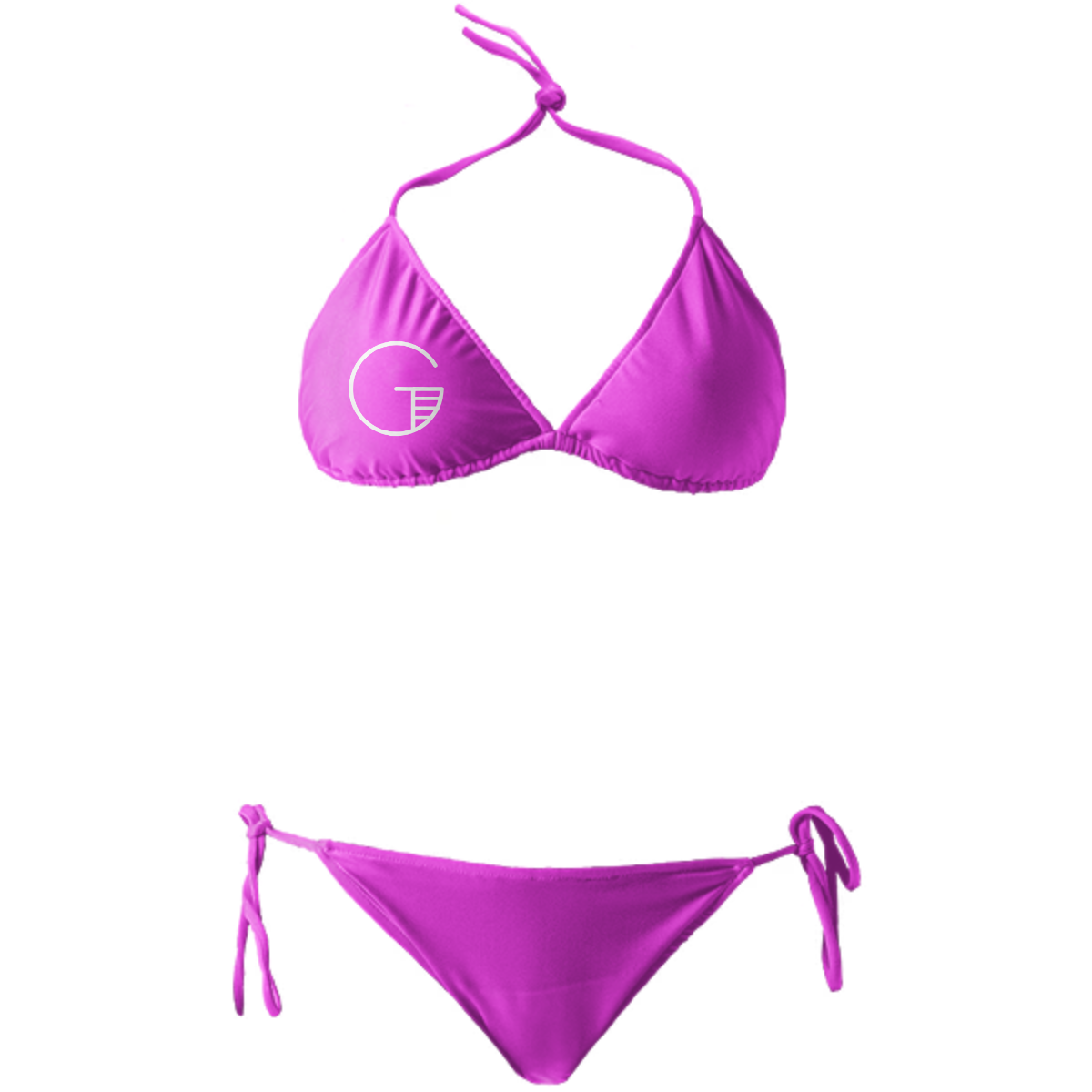 String bikini with ties at the neck bust and hips. Throw it in a bag and head to the beach!