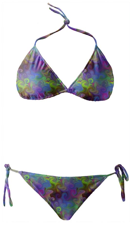 String bikini with ties at the neck bust and hips. Throw it in a bag and head to the beach!