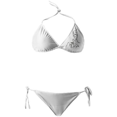 String bikini with ties at the neck bust and hips. Throw it in a bag and head to the beach!