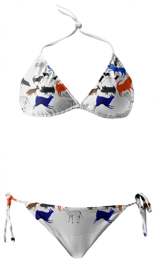 String bikini with ties at the neck bust and hips. Throw it in a bag and head to the beach!