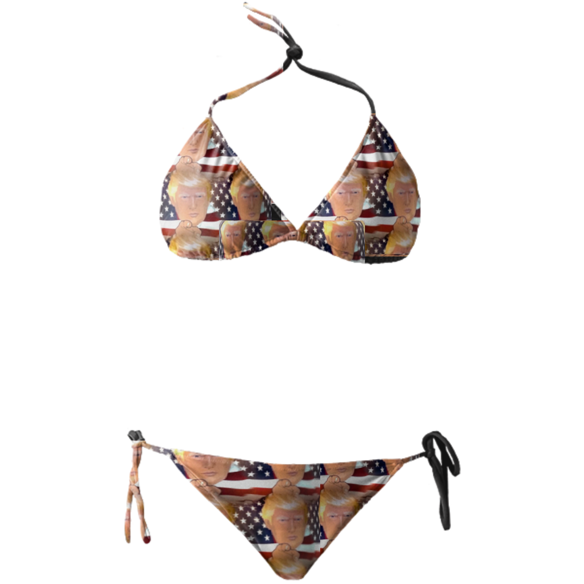 String bikini with ties at the neck bust and hips. Throw it in a bag and head to the beach!