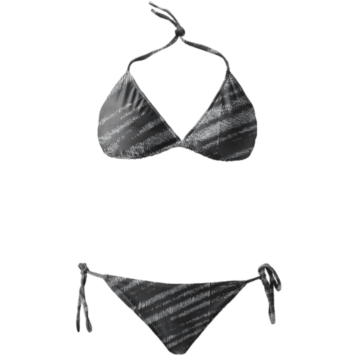 String bikini with ties at the neck bust and hips. Throw it in a bag and head to the beach!