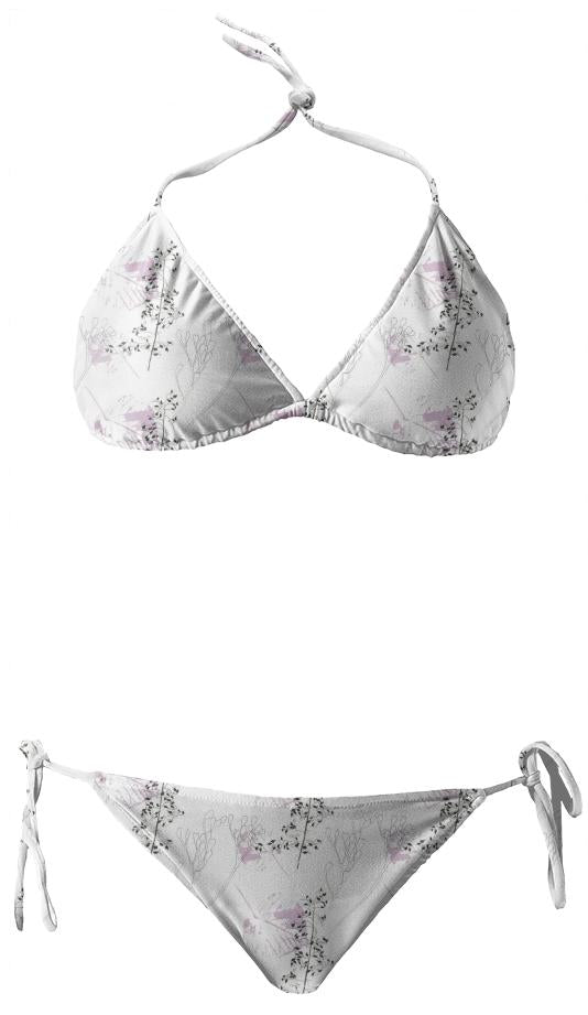 String bikini with ties at the neck bust and hips. Throw it in a bag and head to the beach!