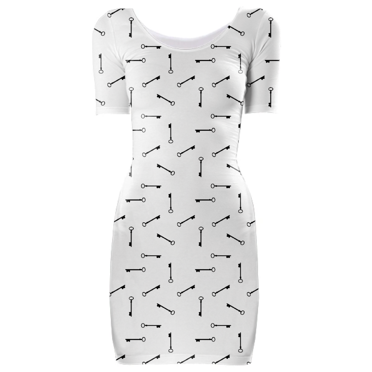 Tight fit scoop neck bodycon dress with set-in sleeves.