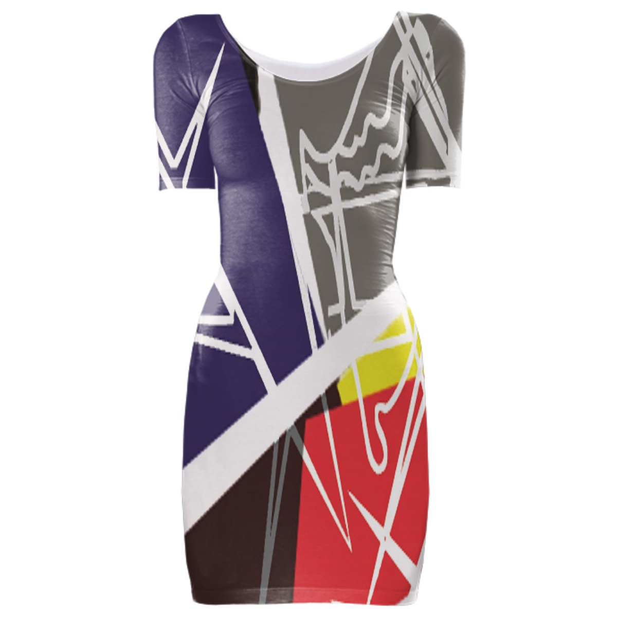 Tight fit scoop neck bodycon dress with set-in sleeves.