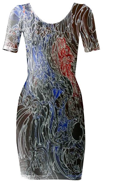 Tight fit scoop neck bodycon dress with set-in sleeves.