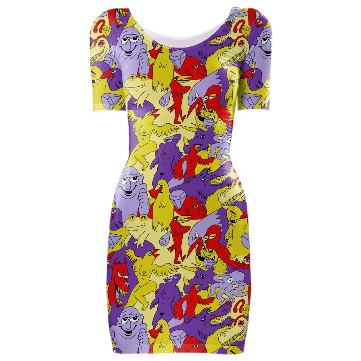 Tight fit scoop neck bodycon dress with set-in sleeves.
