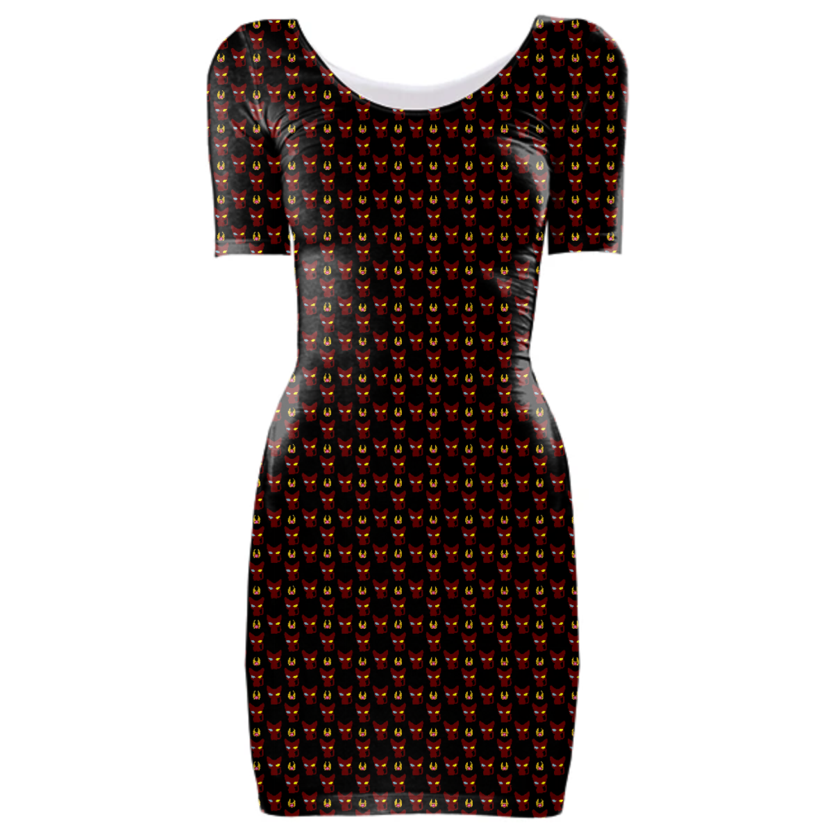 Tight fit scoop neck bodycon dress with set-in sleeves.