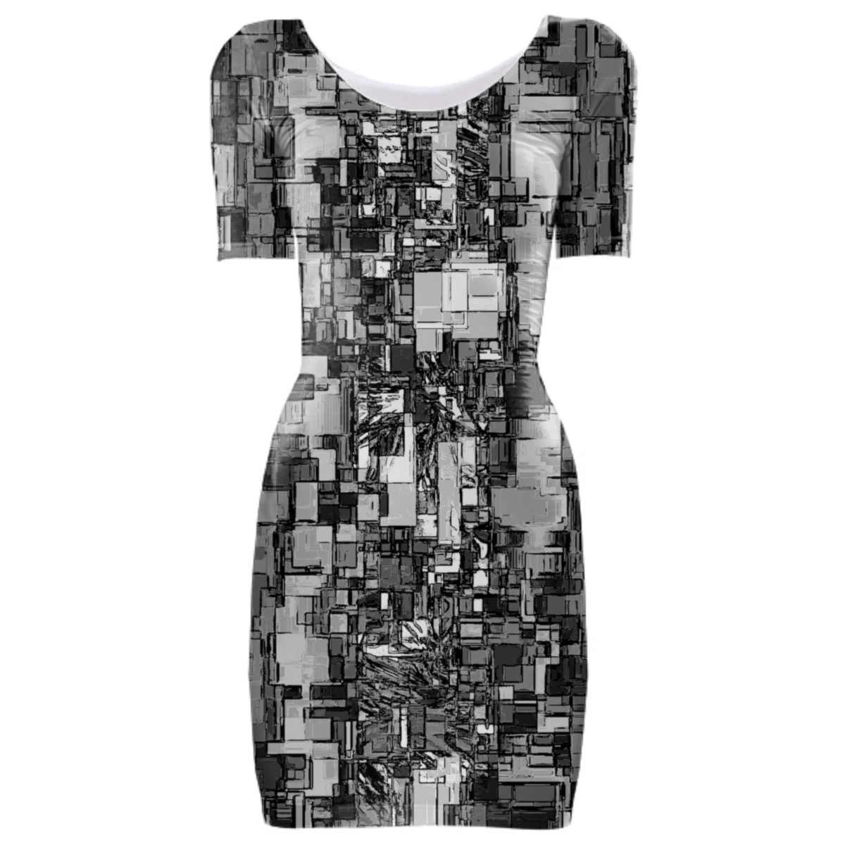 Tight fit scoop neck bodycon dress with set-in sleeves.