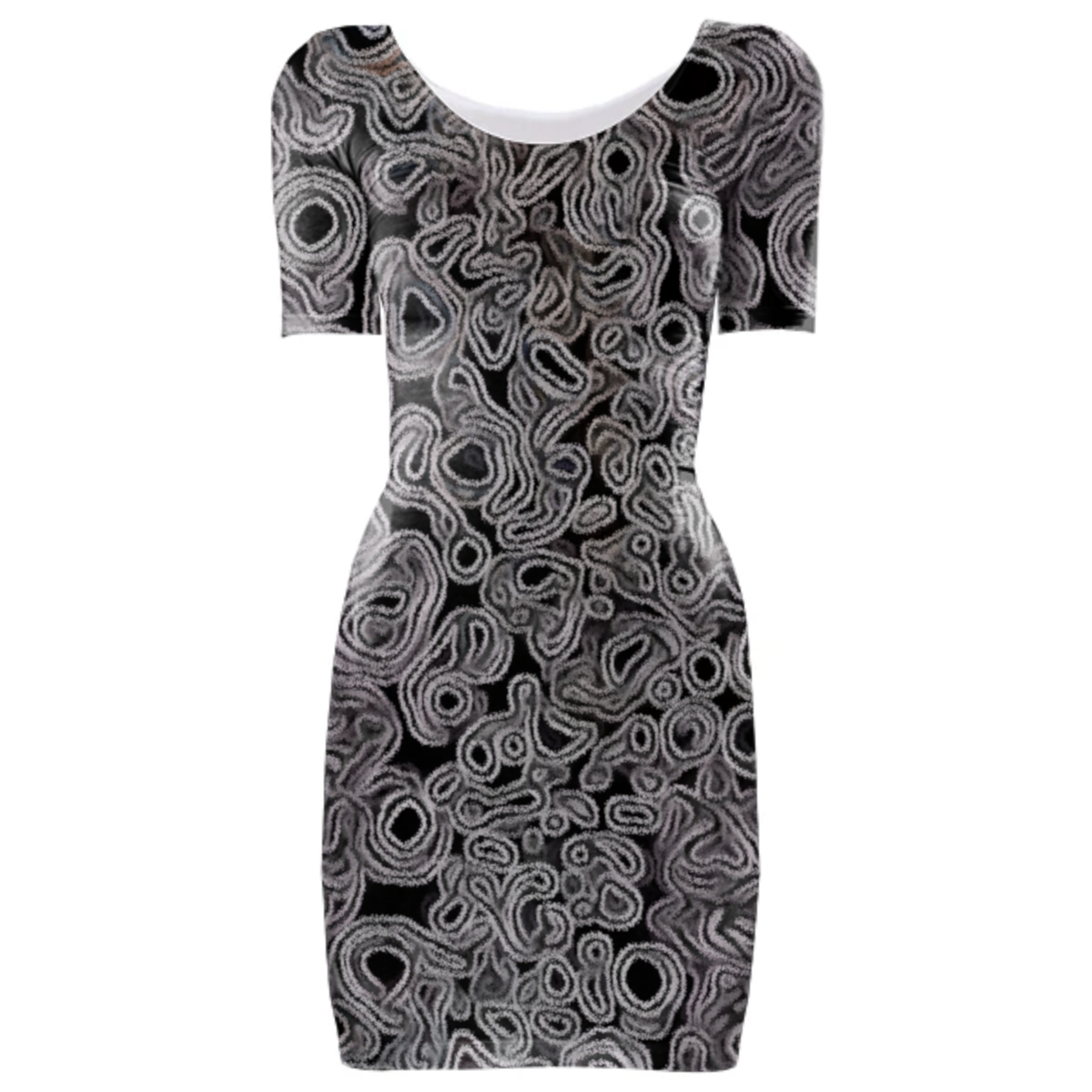 Tight fit scoop neck bodycon dress with set-in sleeves.