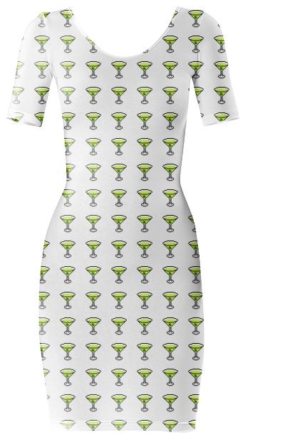 Tight fit scoop neck bodycon dress with set-in sleeves.