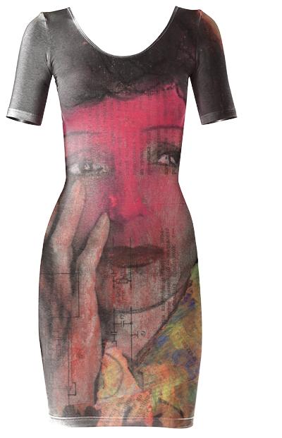 Tight fit scoop neck bodycon dress with set-in sleeves.