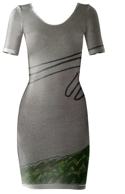 Tight fit scoop neck bodycon dress with set-in sleeves.