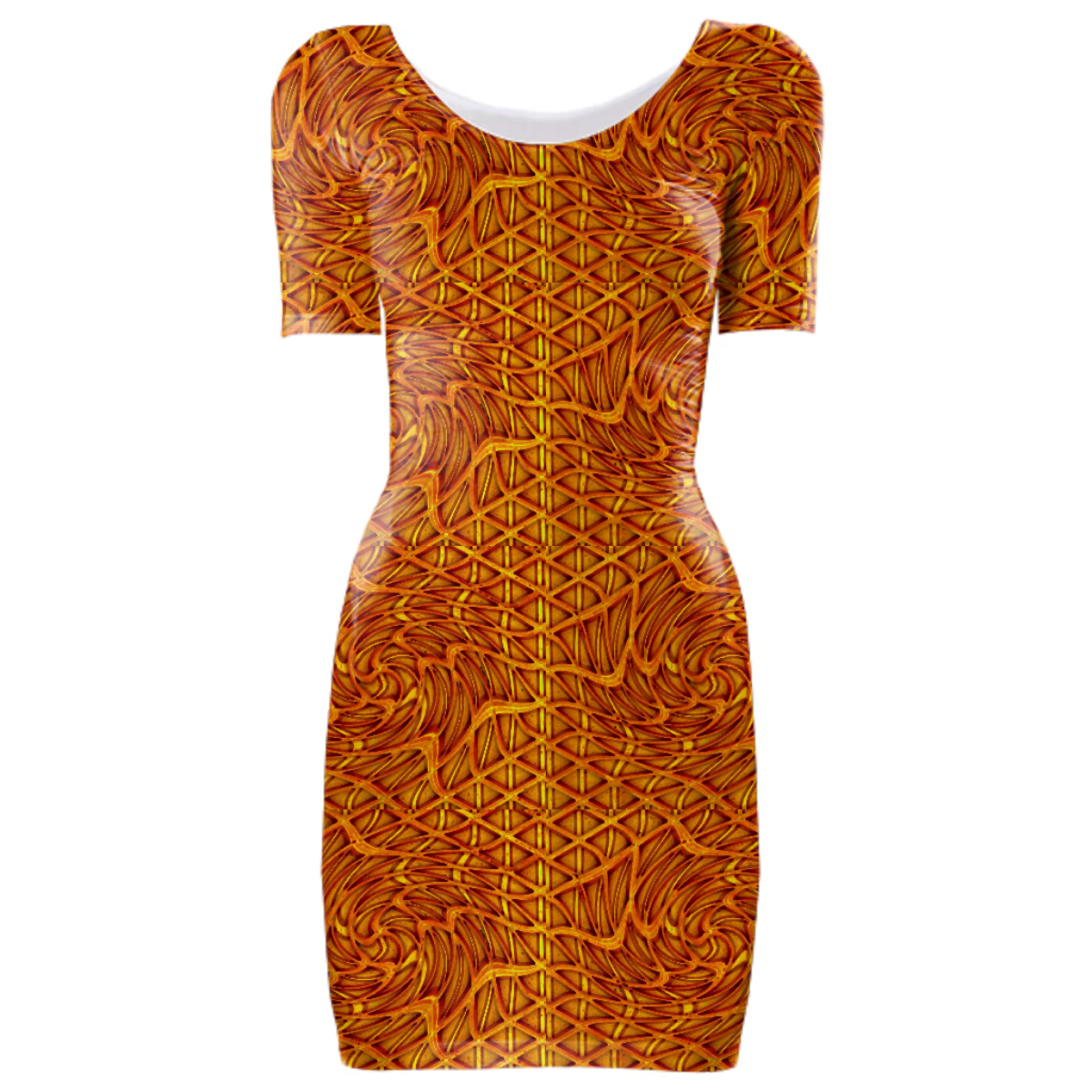 Tight fit scoop neck bodycon dress with set-in sleeves.