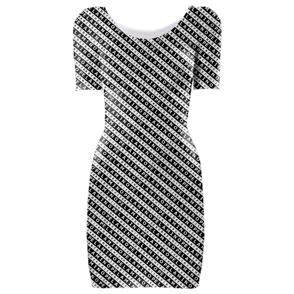 Tight fit scoop neck bodycon dress with set-in sleeves.