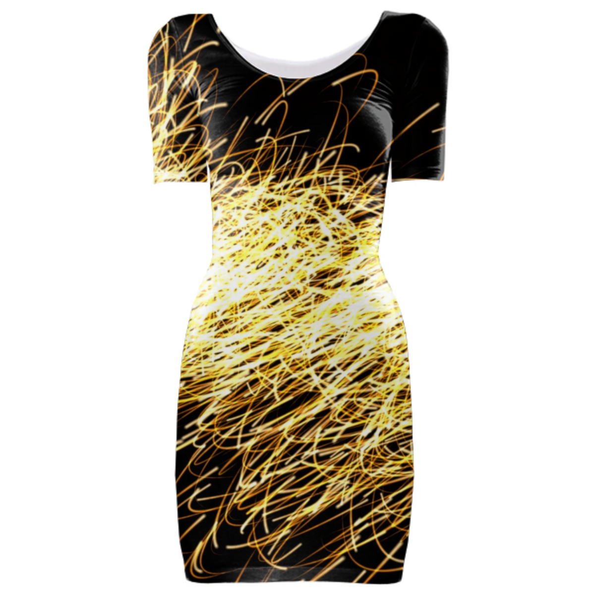 Tight fit scoop neck bodycon dress with set-in sleeves.